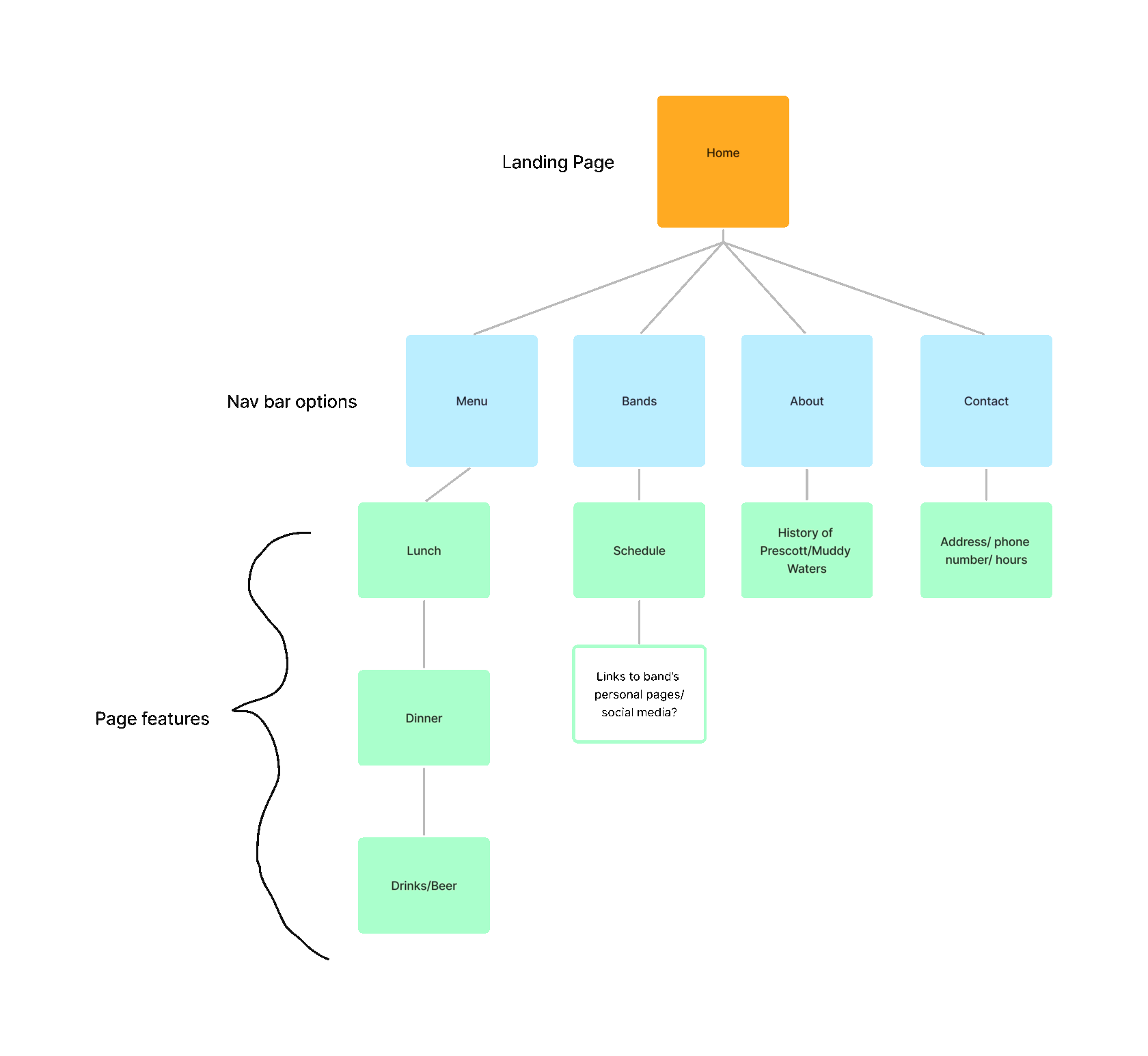 Designing a website experience to increase online satisfaction in target customers, focusing on the menu and approachability of the visual branding. Showcasing the unique attributes of Muddy Waters Bar and Grill as a go-to establishment of downtown Prescott, WI.